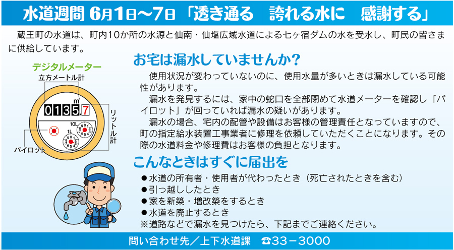 水道週間 6月1日~7日 「透き通る 誇れる水に 感謝する」