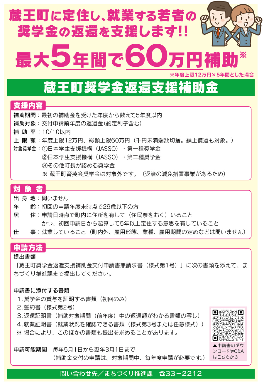蔵王町に定住し、就業する若者の奨学金の返還を支援します!!