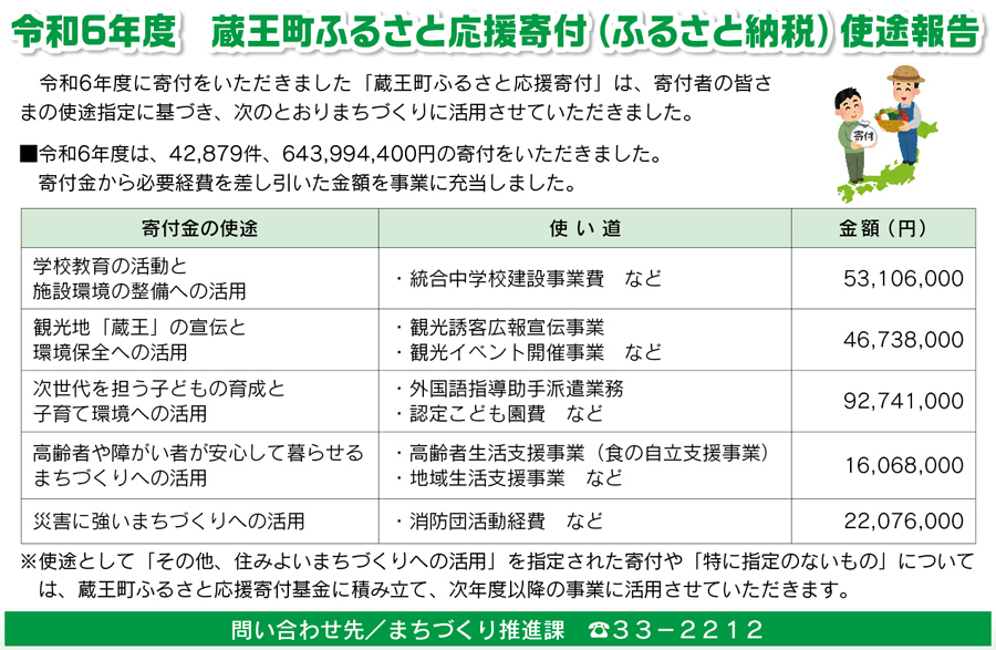 令和6年度 蔵王町ふるさと応援寄付(ふるさと納税)使途報告