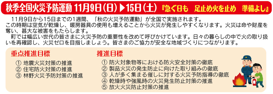 秋季全国火災予防運動 11月9日(日)~15日(土)