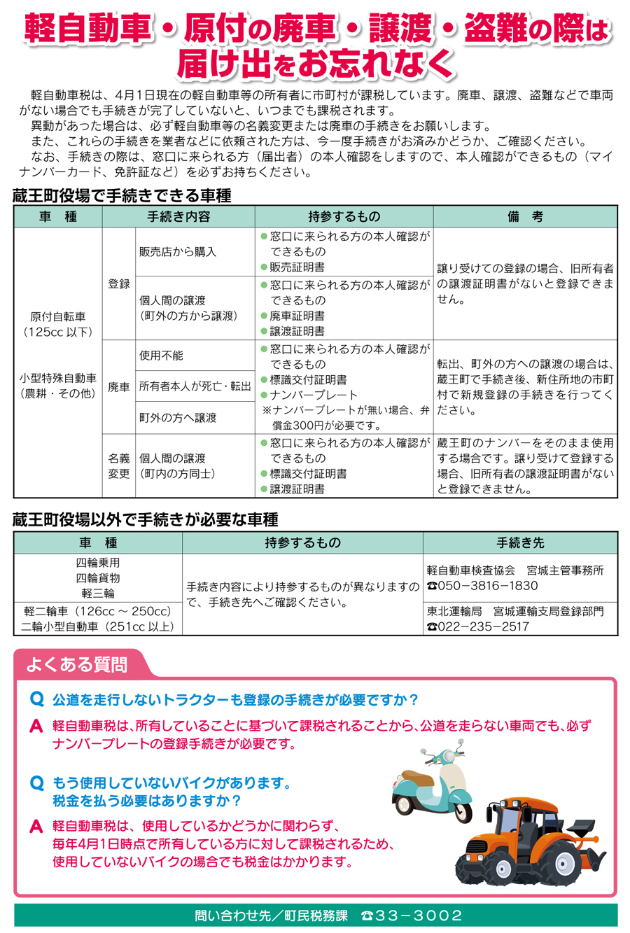 軽自動車・原付の廃車・譲渡・盗難の際は届け出をお忘れなく