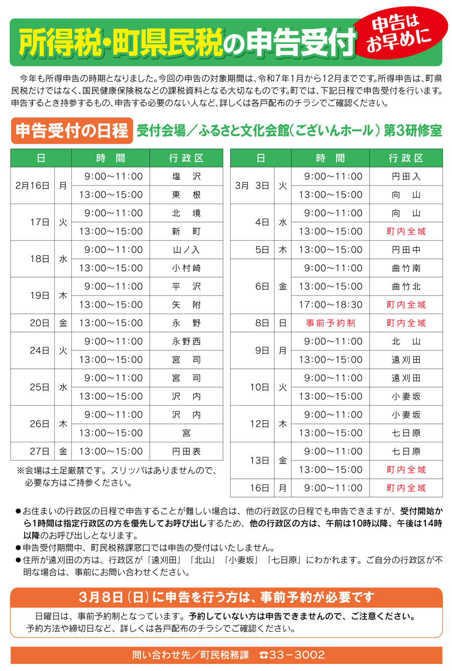 所得税・町県民税の申告受付