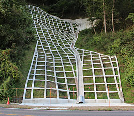 緊急避難道路新設については、高低差が大きく、その地域が土砂災害の警戒区域となっていることから非常に困難である。