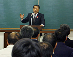 町内の交通安全協会の代表者を前に、吉田