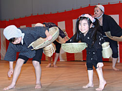 また、ゲストとして、仙台市の太白小学校児童8人による韓国の太鼓「チャンゴ」を使った演奏と、村田町の「どじょうすくい道場」に通う大人と子どもたち23人の安来節の踊りが披露されました。