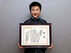 賞状を手にする奥平誉央くん