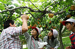 梨のもぎ取り方を教わりました