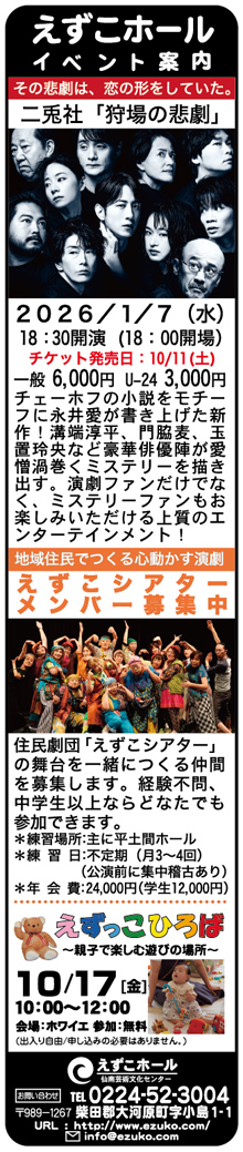 仙南広域都市計画区域マスタープランの見直しに関する説明会・公聴会を開催します。 【説明会】日時/10月27日(月)19時~ 場所/ふるさと文化会館(ございんホール) 第1・2研修室 ※素案および他の会場については県ホームページをご覧ください。 【公聴会】日時/11月11日(火)19時~ 場所/大河原合同庁舎3階301会議室 ※公聴会公述の申出締切は11月4日(火)まで(当日消印有効)。詳細は宮城県公報をご覧ください。 なお、公述の申出がない場合、公聴会を中止し、その旨県ホームページで案内します。 問い合わせ先/宮城県土木部都市計画課 ☎022-211-3134 ![]() |