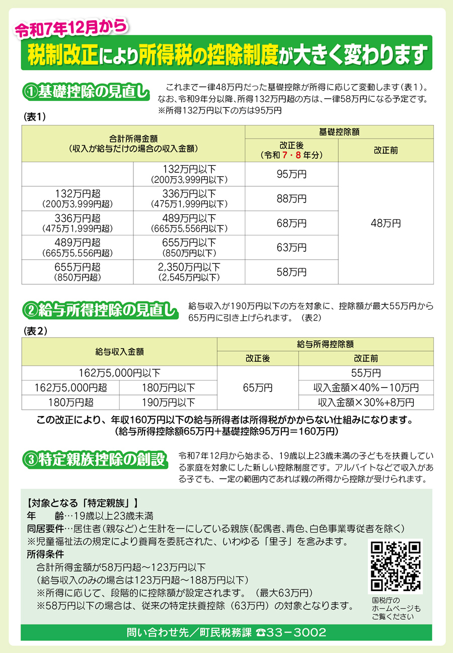 令和7年12月から税制改正により所得税の控除制度が大きく変わります