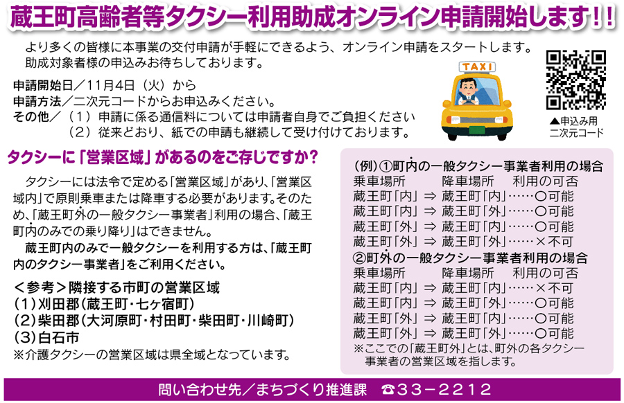 蔵王町高齢者等タクシー利用助成オンライン申請開始します!