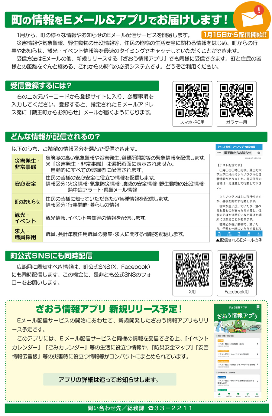 町の情報をEメール&アプリでお届けします!
