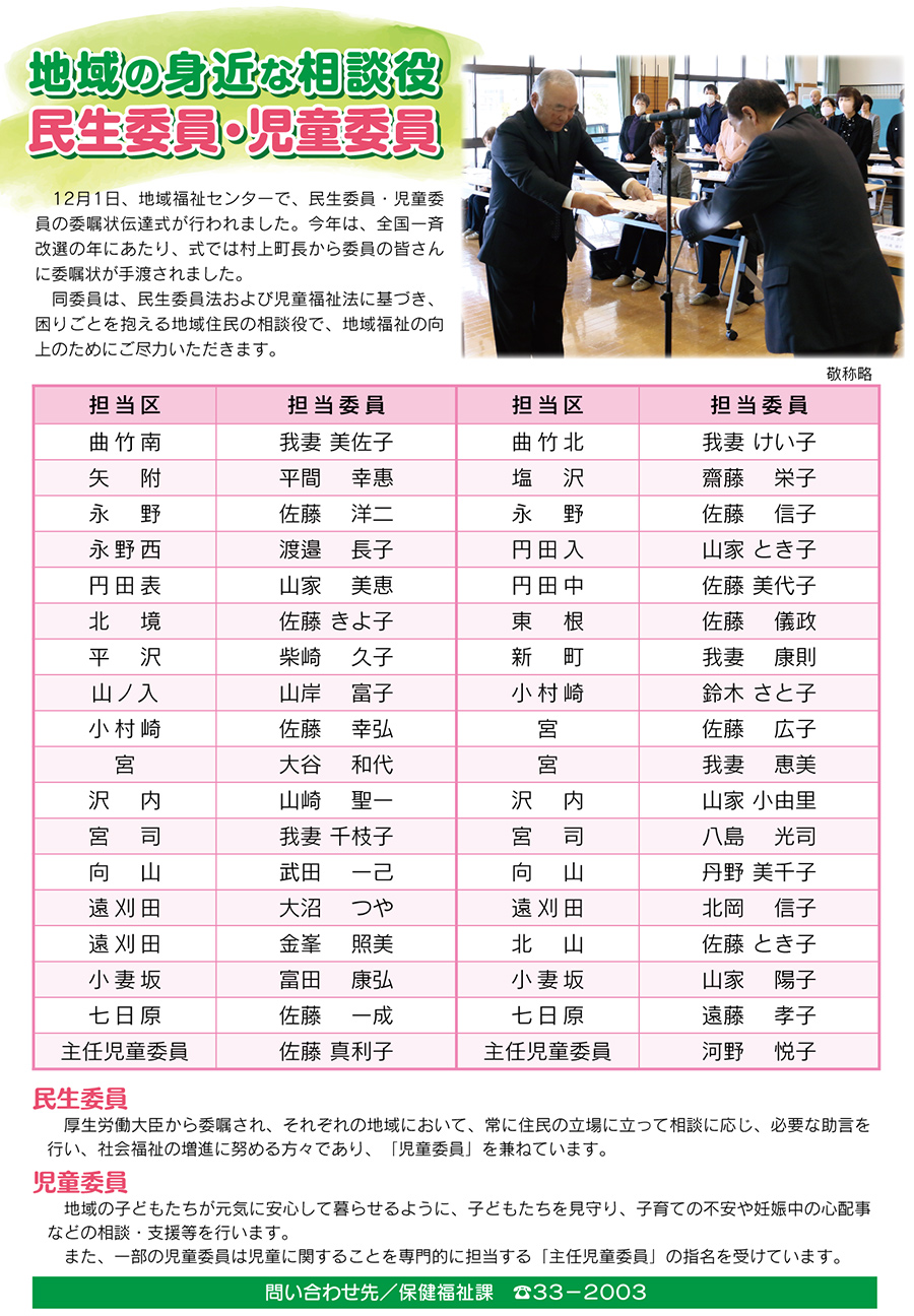 地域の身近な相談役 民生委員・児童委員