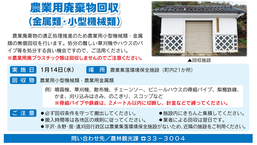農業用廃棄物回収(金属類・小型機械類)