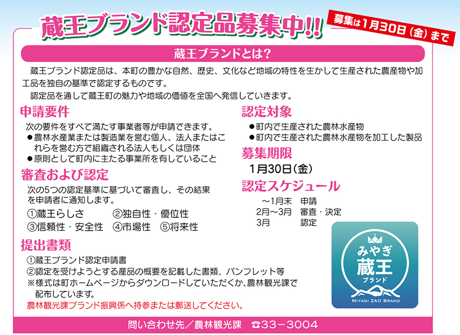 蔵王ブランド認定品募集中!!