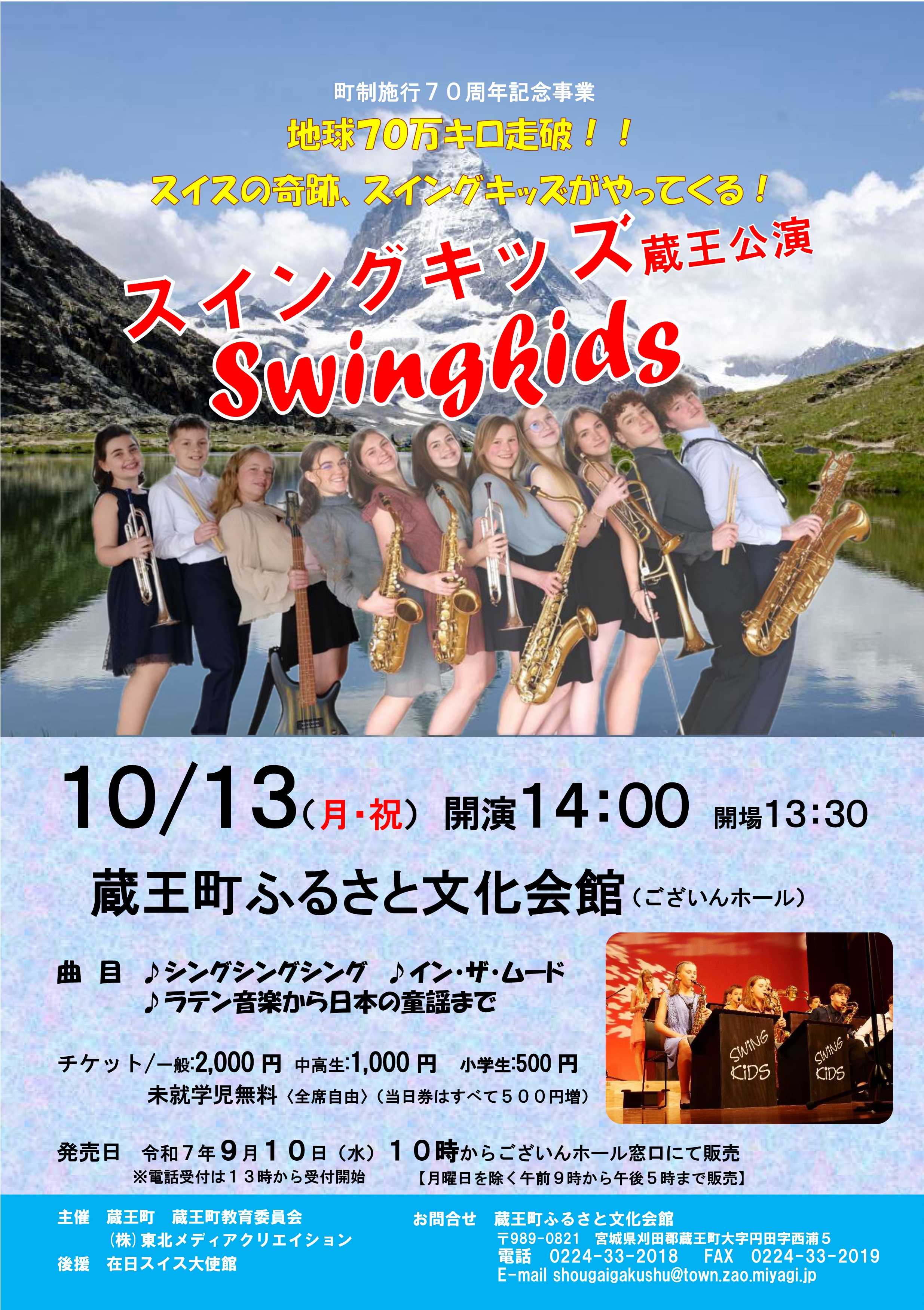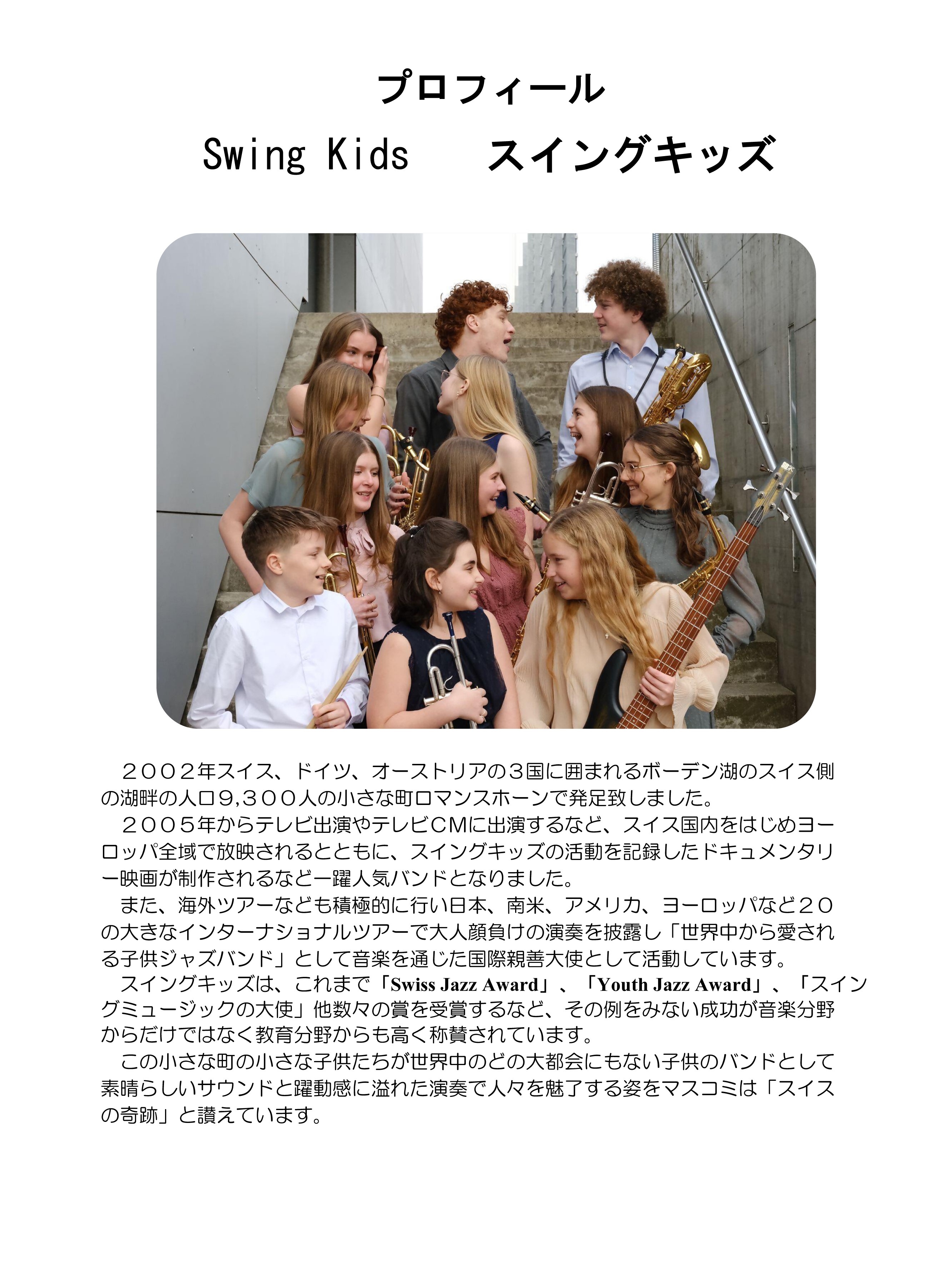 2002年スイスで誕生し、ヨーロッパ全域やアメリカ、南米でコンサートツアーを行う大人気ちびっこジャズバント、「スイングキッズ」が蔵王町にやってきます。