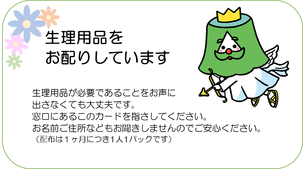経済的な理由などで生理用品の購入が困難な女性の方へ、生理用品を無償で配布します。
