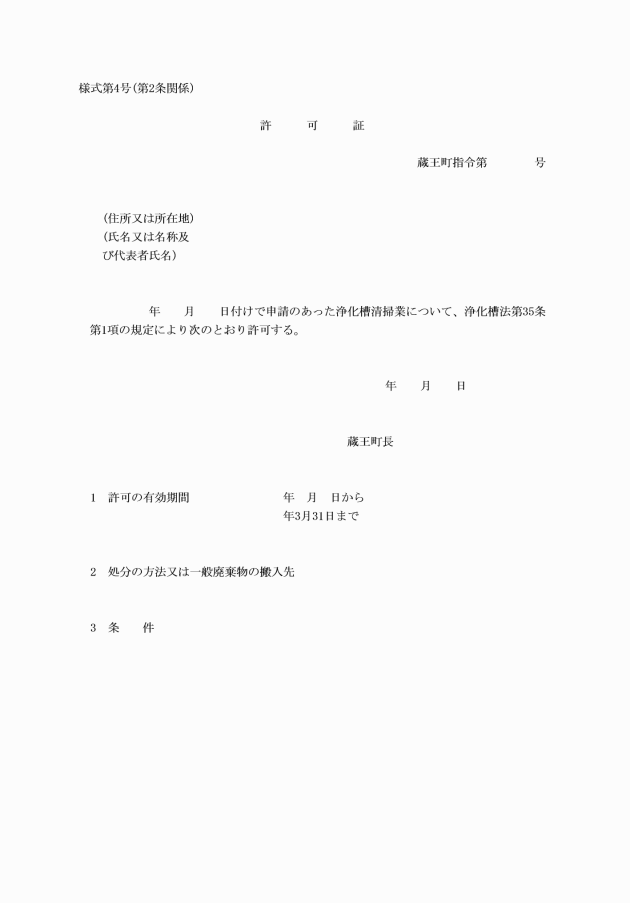 第3条 法第7条第1項、第6項及び浄化槽法第35条第1項の許可の期間は2年とする。