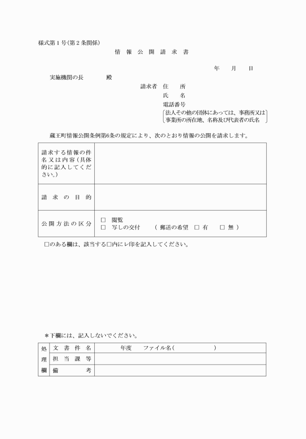 ○蔵王町情報公開条例施行規則