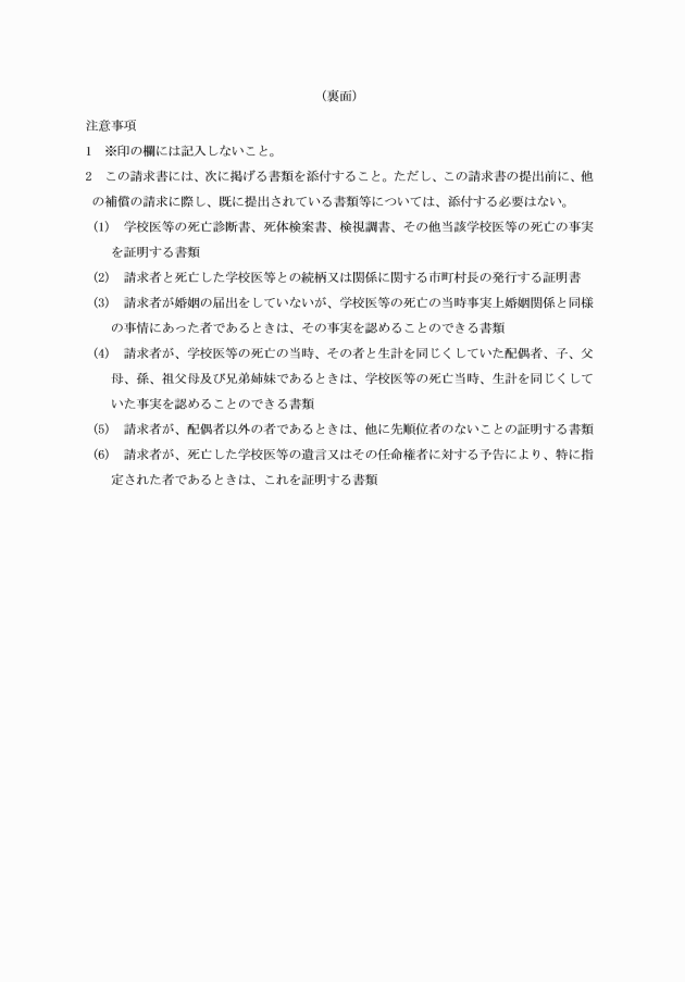 2 補償を受ける権利を有する者が死亡した場合には、その者の遺族は、遅滞なく、その旨を書面で教育委員会に届けなければならない。
