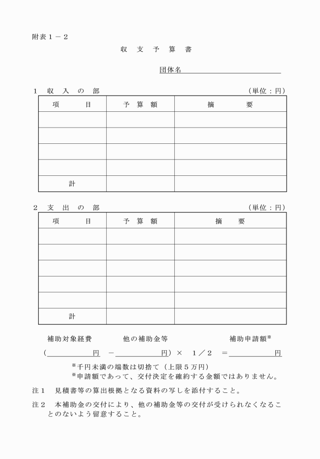 第5条 補助金の額については、補助対象経費の2分の1以内に相当する額とし、1事業当たり5万円を限度とする。ただし、補助対象事業に他の補助金等の交付を受けている場合は、当該補助金等の額を補助対象経費から控除した後の事業費の2分の1以内に相当する額とする。