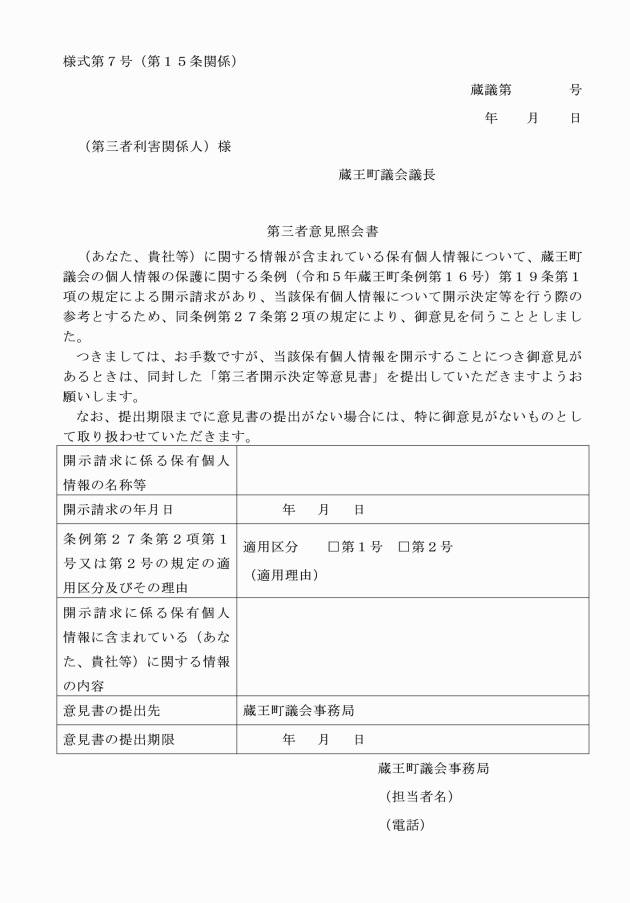 ○蔵王町議会の個人情報の保護に関する条例施行規程